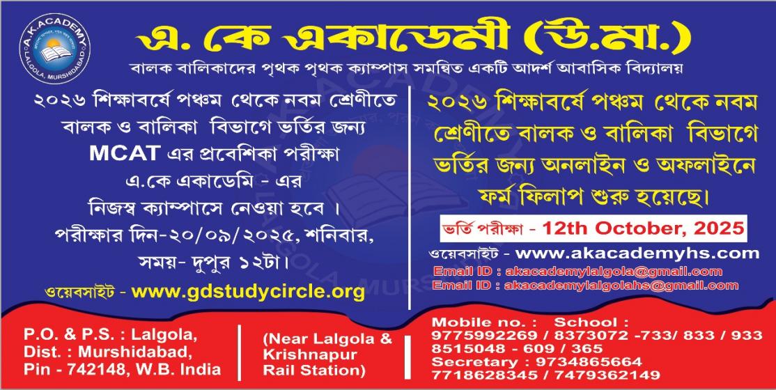 A.K. Academy (H.S.) এর ভর্তি পরীক্ষার বিজ্ঞপ্তি 2026